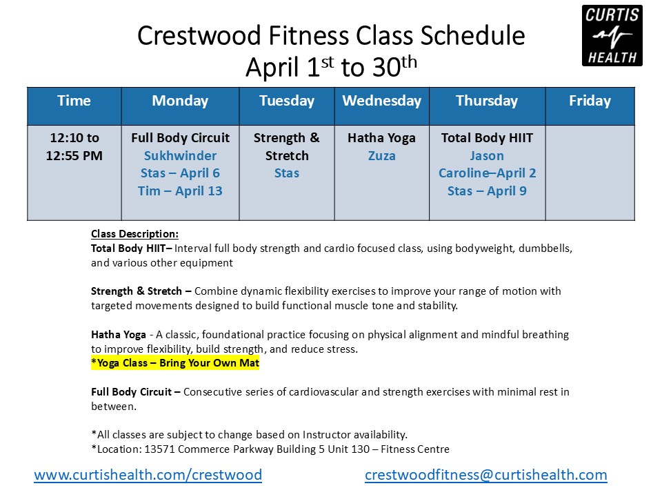 If you have any questions, please do not hesitate to reach out to us crestwoodfitness@curtishealth.com